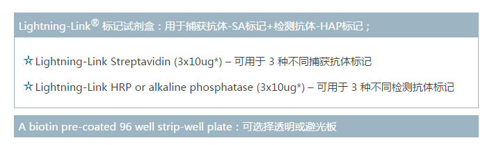 只需自備標(biāo)準(zhǔn)品、抗體對和HRP/AP檢測試劑,輕松制備ELISA。