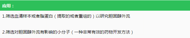 文獻(xiàn):【1】 劉杰等.細(xì)胞膽固醇外流率的測定以及細(xì)胞外膽固醇和脂多糖對(duì)其的抑制作用[J].中國組織工程研究,2016,20(7):1000-1005