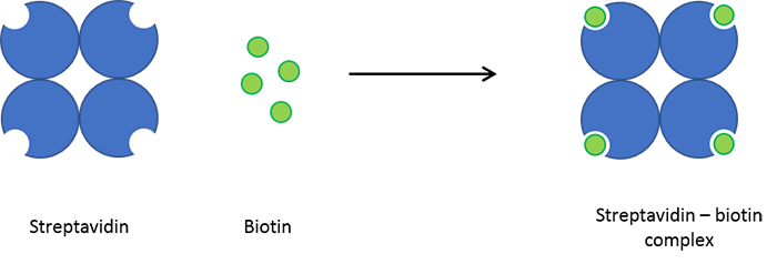 這對具有高親和力的蛋白常被偶聯(lián)到抗體或蛋白,其中biotin常被偶聯(lián)到抗體或配體,streptavidin偶聯(lián)標記物如熒光素、HRP或AP、NanoGold等,如此通過Biotin—Streptavidin橋連來可實現間接檢測靶標。