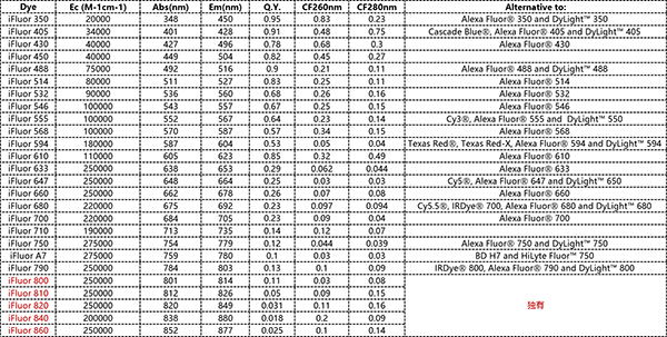 現(xiàn)在來說說iFlourTM 染料是啥。大家對Alexa Fluor? 熒光應該很熟悉,iFlourTM 是比Alexa Fluor?穩(wěn)定性及亮度更好的熒光,用來標記抗體等一些生物分子,質量上乘,價格合理,由美國AAT Bioquest提供(https://www.aatbio.com)。