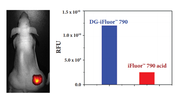 Mice with tumor were intravenously injected with 10 nmol of 2-Deoxyaminoglucose (DG)- iFluor? 790 conjugate or control iFluor? 790 acid and imaged at the 6th hour( https://www.aatbio.com/search?query=iFlour ).