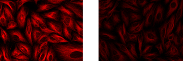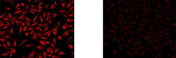 goat anti-mouse IgG with AAT iFluorTM 594 conjugate (Left) and with Alexa Fluor? 594 (Right)
