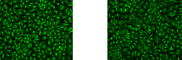 標記試劑盒標記的不經(jīng)純化的抗體(左),與純化抗體(右)染色效果相當。