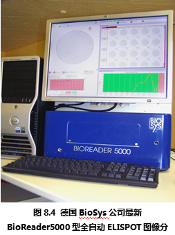 德國Bio-Sys公司從上世紀(jì)80年代開始就致力于生物圖像識(shí)別領(lǐng)域,在進(jìn)入ELISPOT圖像分析儀市場(chǎng)后一直以其先進(jìn)的ELISPOT斑點(diǎn)識(shí)別技術(shù)聞名。德國Bio-Sys公司首先解決了顯微攝像系統(tǒng)難以定位96孔板上的每一個(gè)孔的問題。其解決方法基于圖像識(shí)別技術(shù),利用板孔邊壁和真正的孔底的細(xì)微差別,在機(jī)械定位的基礎(chǔ)上,通過軟件識(shí)別來進(jìn)一步提高每孔的定位精度。是目前市場(chǎng)上所有ELISPOT圖像分析儀中唯一能夠完整識(shí)別整個(gè)孔底ELISPOT斑點(diǎn)圖像的設(shè)備。在對(duì)真假斑點(diǎn)的分辨中,德國Bio-Sys公司除了具備完善的物理學(xué)多參數(shù)識(shí)別技術(shù),還特別針對(duì)ELISPOT斑點(diǎn)形成的生物學(xué)過程,通過細(xì)胞因子顯色后的“光密度”峰值積分分析方法,精確分辨真假斑點(diǎn)、融合斑點(diǎn)等復(fù)雜情況。Bioreader系列ELISPOT圖像分析儀國外大多數(shù)較有經(jīng)驗(yàn)的ELISPOT實(shí)驗(yàn)室推崇的特點(diǎn)為:專業(yè)性和參數(shù)全開放性。因?yàn)镋LISPOT實(shí)驗(yàn)的復(fù)雜性,ELISPOT斑點(diǎn)形成在不同的實(shí)驗(yàn)條件下有非常大的差異。這就對(duì)ELISPOT圖像分析儀提出了較高的要求:既要能夠保證斑點(diǎn)計(jì)數(shù)的真實(shí)性和一致性,又要能夠根據(jù)不同情況,通過實(shí)驗(yàn)者的判斷來校正儀器對(duì)ELISPOT斑點(diǎn)識(shí)別的標(biāo)準(zhǔn)。要同時(shí)實(shí)現(xiàn)以上兩個(gè)要求,唯一的辦法是將儀器的所有判斷標(biāo)準(zhǔn)向ELISPOT實(shí)驗(yàn)者開放,實(shí)現(xiàn)實(shí)驗(yàn)者和儀器的互動(dòng)。在這一方面,德國Bio-Sys公司始終走在ELISPOT斑點(diǎn)識(shí)別領(lǐng)域的前列,新的Bioreader-4000型(圖8.3)和Bioreader -5000(圖8.4) 型在專業(yè)性和適用性方面都領(lǐng)先于其他廠家的設(shè)備。