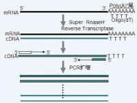 cDNA的合成是RT-PCR 的重要環(huán)節(jié)。以mRNA為模板,在逆轉(zhuǎn)錄酶的催化下,隨機引物、oligo(dT)或基因特異性引物的引導(dǎo)下合成互補的DNA(complementary DNA,cDNA),再按照普通PCR的方法設(shè)計兩條引物,以cDNA為模板,則可擴增出不含內(nèi)含子的完整基因的序列。